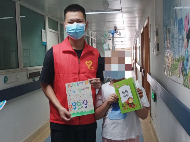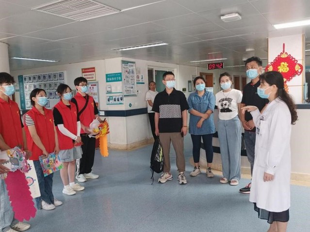 7月6日,志愿团队员们来到河南省肿瘤医院,在医务人员的陪同下看望白血病儿童,了解义务献血的血液用途。到达后,医务人员给志愿者们进行了细致的培训工作,详细讲解了白血病的相关知识,明确了如何与白血病儿童相处,如何消毒和处理突发情况以及各种工作的注意事项。讲解结束后,队员们开始与孩子们进行亲切交流和互动,给他们送上寓意“呵护、健康、美好”的爱心礼物和真挚的祝福,同时孩子们也将自己精心制作的寓意“希望、乐观”的手工艺品回赠给队员们。活动现场充满欢声笑语,志愿者和孩子们一起将这份美好深埋于心田。