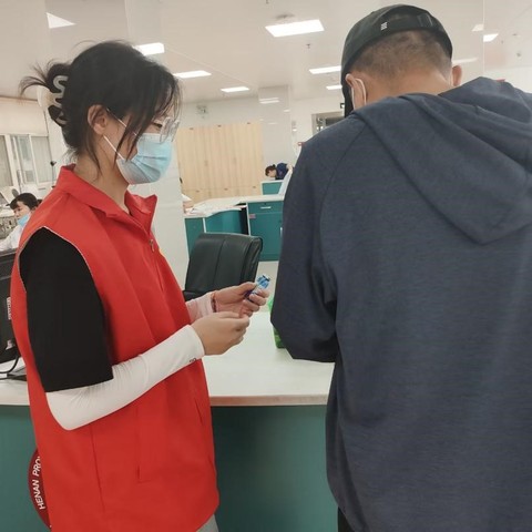 7月5日上午,志愿服务团队员们到达河南省红十字血液中心,在接受医务人员的专业培训后,小队成员满怀信心地开展本次志愿服务活动。队员们严格按照献血流程,悉心引导献血人员填写基本信息。献血前,每位队员耐心地向献血者讲解注意事项,缓解他们的紧张情绪和不适感。献血中,实践队员时刻关注献血者的身体状况,亲切地询问他们的身体感受,确保献血过程顺利平安完成。小队成员们分工明确、配合默契,活动现场秩序井然。