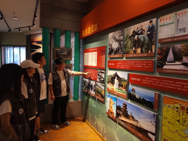 调研出发前,实践团队员们通过多渠道查询资料,更好地了解了黄河流域生态状况及黄河治理现状。7月2日,实践团队员们跟随习近平总书记的足迹,来到黄河花园口、黄河地质博物馆开展红色实景课堂参观学习实践活动。黄河地质博物馆按内容分层、按板块分区,一件件文物、一段段文字、一幅幅图片,无不展示着黄河悠久的历史与文化。队员们系统学习了黄河的历史地理知识,深入了解了中华民族治黄的历史,深切感悟黄河文化蕴含的时代价值。参观完毕后,实践团队员们一起分享学习心得,纷纷表示这种沉浸式学习收获颇丰,未来一定将所学转化为所用,讲好黄河故事,传播好黄河文化。