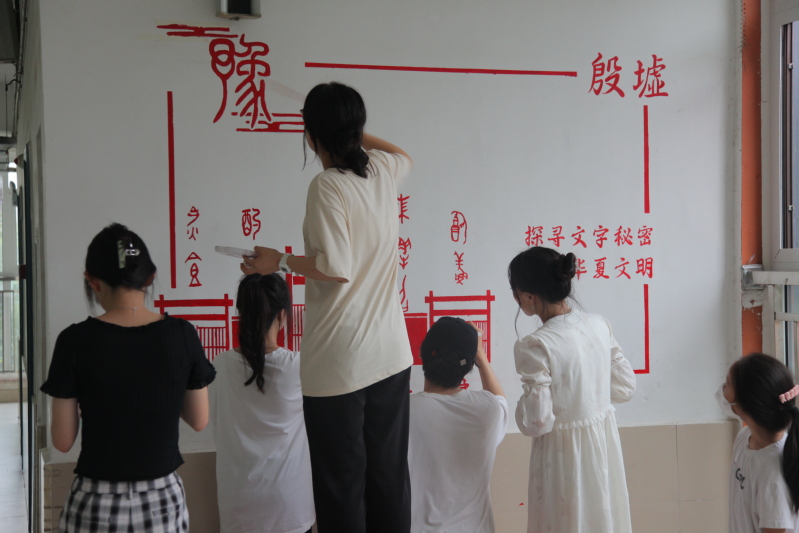 本次墙绘志愿服务活动主要围绕河南省的文化标识、建筑标识以及标志性任务三大主题,九面墙体绘制总面积近60平方米。活动中,同学们精心构思设计,然后勾线、上色、精修,经过四天的绘制,少林寺、龙门石窟、殷墟、二七塔、小浪底、岳飞、张仲景等最能代表河南文化的元素跃然于墙上,为地方校园文化建设增添色彩。