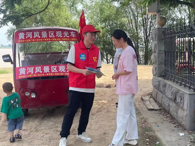 垃圾清理结束后,为增强广大群众对黄河生态保护意识,志愿者们在沿岸对游客行人发放和讲解保护生态环境宣传单,细心讲解宣传彩页内容,宣传爱河护河知识,传播绿色生态环保理念,呼吁大家杜绝向河道倾倒垃圾、扔掷杂物等不文明行为,共同呵护黄河生态环境。志愿者们以身作则,争做护河“守望者”,发放讲解着一份份宣传单页,展示了护河决心,为营造“水清、河畅、岸绿、景美”的良好生态环境躬身力行。