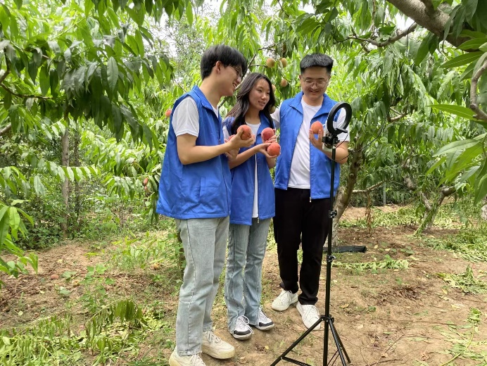 通过前期调研发现,农村地区存在农产品滞销的问题,在深入了解农民的销售渠道与方式后发现大部分农民对于科技产品的使用程度不高,销售思路较为局限,为将自己的知识、技能和创新理念带到农村,实现城乡资源的共享和互补,促进城乡一体化发展,团队来到郑州市荥阳市桃园开展科技支农工作。队员们通过“直播助农”、拍摄短视频进行农产品宣传等方式,扩大市场和宣传渠道,促进农产品的流通和增值,并运用传统媒体、网络、电视等媒介,广泛宣传科技支农技术,提升农民的科技接受度和此技术的利用水平。