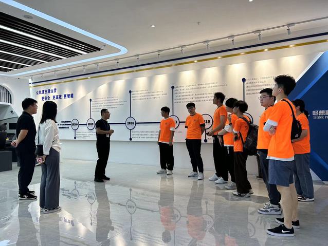 7月6日上午,小分队主要走进了郑州畅想高科股份有限公司。公司负责人对大家的走访表示热烈欢迎,带领老师和同学们参观了办公环境,讲解公司基本情况、发展趋势和人才需求。经负责人介绍后了解,公司有“数智运维”和“仿真实训”两大产品体系——数智运维主要面向轨道交通机车车辆运用与维护、安全管理等环节提供技术支持;仿真实训主要面向轨道交通运营管理企业及职业院校,为其提供教学系统与配套设备。目前公司产品及市场已覆盖全国18个铁路局集团、多个城市地铁及全国多所轨道交通职业院校,以及国家能源集团和地方铁路。同学们对此产生了浓厚兴趣,部分同学还表示希望毕业后能从事该方向。魏远耀老师借此详细介绍学校学院专业、人才培养、科技创新、办学成果等,推介我们学院优秀毕业生,并希望双方能精诚合作,搭建合作平台,实现互利共赢。