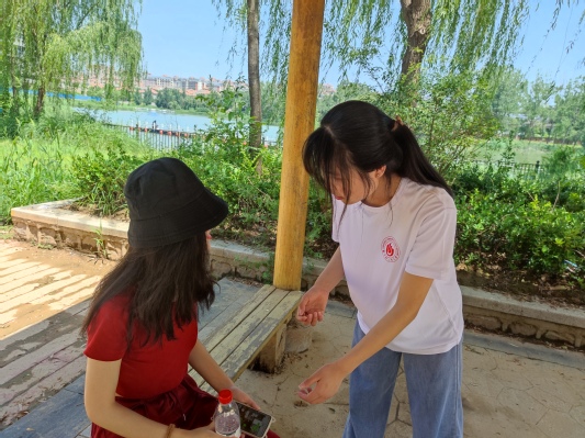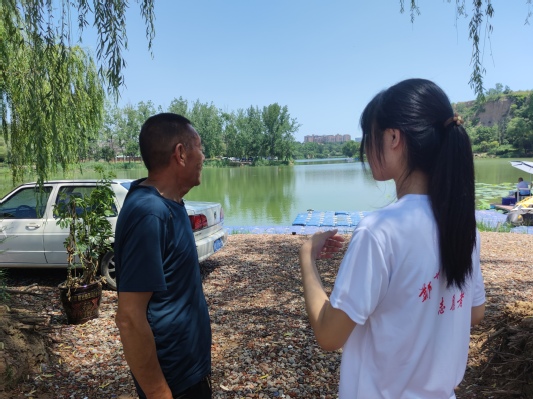 通过景区指示牌和附近人员的介绍引导,志愿者们认识并了解了洞林湖的来源以及发展历史,对于洞林湖湿地的相关生态系统等进行了考察以及宣传。小分队成员来到洞林湖周边查看湿地情况以及进行生态保护知识宣讲,了解到了洞林湖厚重的历史文化。