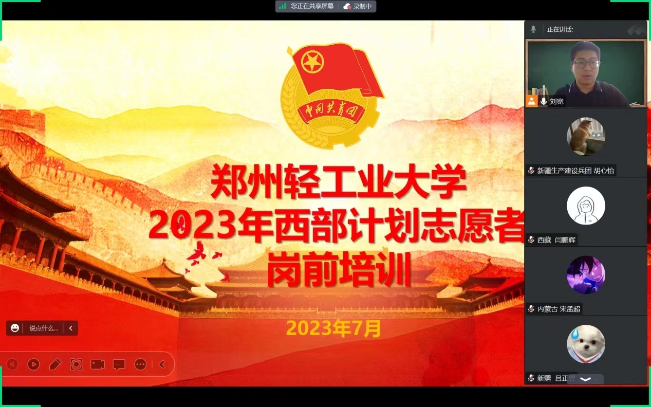 为落实团中央工作要求,推动我校西部计划志愿者工作迈上新台阶、创造新业绩,7月19日,学校组织开展2023年西部计划志愿者岗前培训,大学生志愿服务西部计划第一批志愿者共计29名同学及团委相关负责老师参加了本次培训。