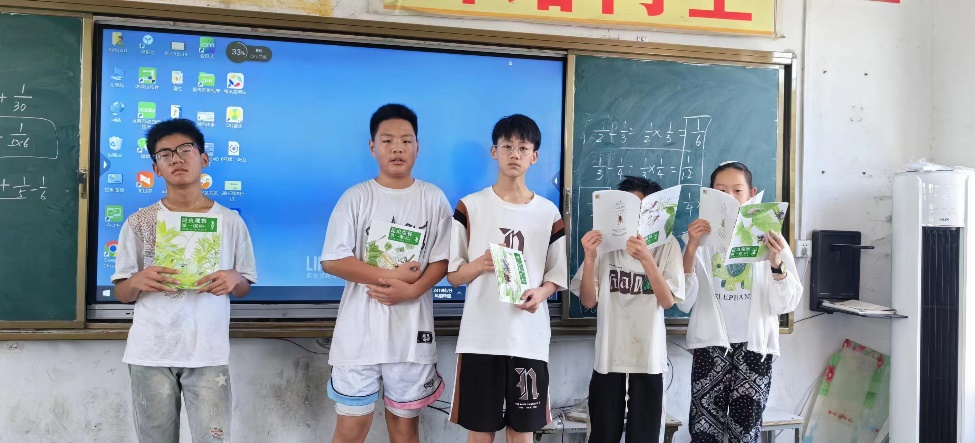 针对重渠小学图书室资源匮乏的现状,实践队为孩子们精心准备了儿童系列读物,孩子们兴奋不已,纷纷向志愿者们请教如何挑选适合自己的书籍。队员引导孩子们根据兴趣选书,并鼓励他们利用空闲时间多读书、多思考。课下,孩子们热切地分享好书,相互交换心得。知识在孩子们之间流动和传播,为孩子们的翱翔梦想插上知识的翅膀。