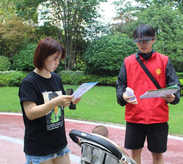 志愿者们迎着烈日穿梭在社区中,为居民们发放消防安全知识宣传页,热情地为居民讲解各种消防知识,并通过开展消防问卷调查活动了解居民们的消防常识掌握情况。“灭火器是我们日常生活随处可见的灭火器材,在使用灭火器时,按照‘提、拔、握、压’这个步骤就可以顺利使用。”志愿者一边演示一边讲解到。社区居民陈先生表示:“我们家门口就有社区配备的灭火器,却一直不知道怎么使用。今天听了你们的讲解,以后就知道怎么正确灭火了。”