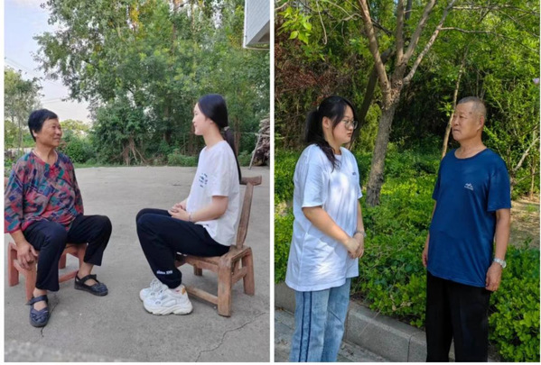 在此次活动的最后,队员们回到各自的家乡,在社区内拜访老党员。山东省东营市龙居镇大张村的老党员张春松爷爷回顾了他保家卫国的军旅生涯。1980年因伤退役后,他一直在村委会工作,勤勤恳恳,兢兢业业。一朝入党,一生为党。老党员们的亲身经历动情感人,发人深省,队员们认真倾听,深入学习他们所分享的建设社会主义新中国的经验和心得,并重新思考对标了自己的入党初心,大家纷纷立志做有理想、敢担当、能吃苦、肯奋斗的新时代好青年。