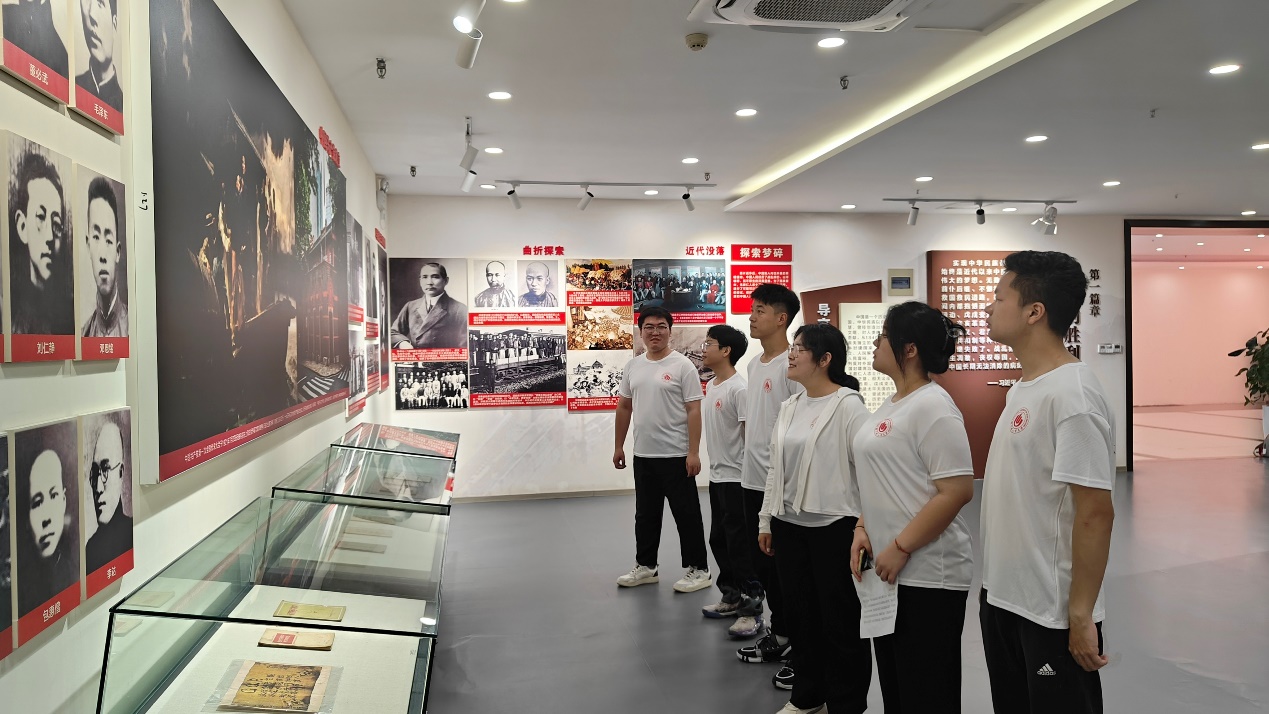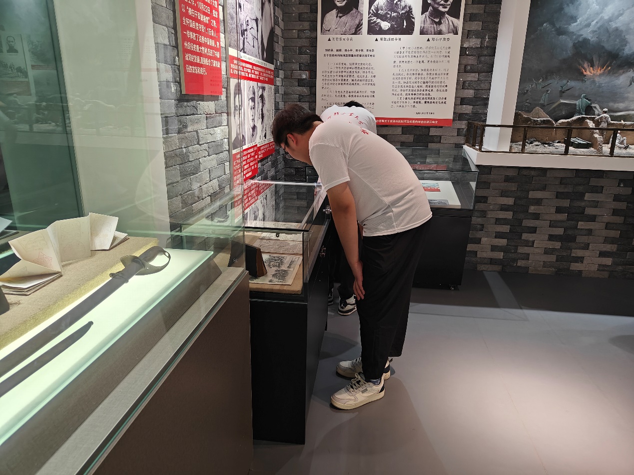 郑州党史纪念馆由“人民的胜利、艰难的探索、辉煌的跨越、崭新的时代”四个篇章组成,重现了中国共产党人不畏牺牲、前仆后继的伟大壮举,展示了中国共产党领导郑州人民浴血奋战、艰苦创业、改革创新的历史壮举。在讲解员的带领下,实践队成员参观了中国共产党成立史和新中国成立以来郑州发展历史,一张张照片、一件件历史实物、一段段真实史料和一份份详实档案系统回顾了在中国共产党领导下郑州的发展,展现了中原儿女在党的领导下从黑暗统治到全面解放、从社会主义建设到改革开放、进而步入新时代走过的艰辛历程。队员们怀着崇敬的心情,在一面面展墙前驻足观看,仔细聆听讲解,重温革命先辈的光荣事迹,用心感受一张张珍贵历史照片背后可歌可泣可赞的感人故事。