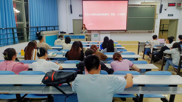 章冠博老师主要从四个方面向我们阐释了社会主义现代化建设的教育、科技、人才战略,一是如何理解新时代科教兴国战略的重大意义;二是怎样加快建设教育强国;三是怎样加快建设科技强国;四是怎样深入实施新时代人才强国战略。章冠博老师向同学们讲述,在新时代新征程上,党的二十大报告重申深入实施科教兴国战略,这是我们党在当下审时度势,根据国际国内形势,特别是根据中国共产党的中心任务和全面建设社会主义现代化国家首要任务而作出的重大战略部署,并通过列举习近平总书记关于教育的重要论述来让同学们明白在这样的背景下实施科教兴国战略的重大意义,激励同学们努力学习,培养自身的创新能力,为增强中国创新能力贡献自己的一份力量。