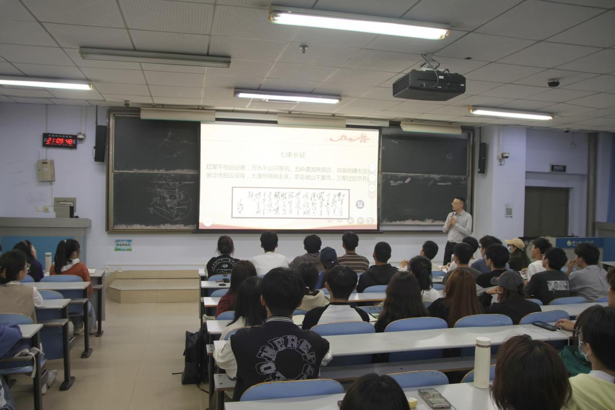一次次历尽艰难险阻,勇往直前;一次次突破生死绝境,涅槃重生。任润鑫老师首先为同学们讲解了红军长征的背景,面对日益严重的民族危机,中国共产党始终高举抗日大旗,号召全国人民团结抗日。随后,任老师通过板书详细讲解了遵义会议召开前后红军长征路线的变化及特点,运用图画的形式使同学们更加直观了解长征路线图,带领同学们学习领会毛泽东主席的伟大军事战略。红军四渡赤水河、巧渡金沙江、强渡大渡河、翻越夹金山,形成了伟大的长征精神,是当代中国的民族精神,是我们党之魂、军之魂、民族之魂。最后,任老师和同学们共同朗诵了《七律·长征》,结束了本堂课的学习。
