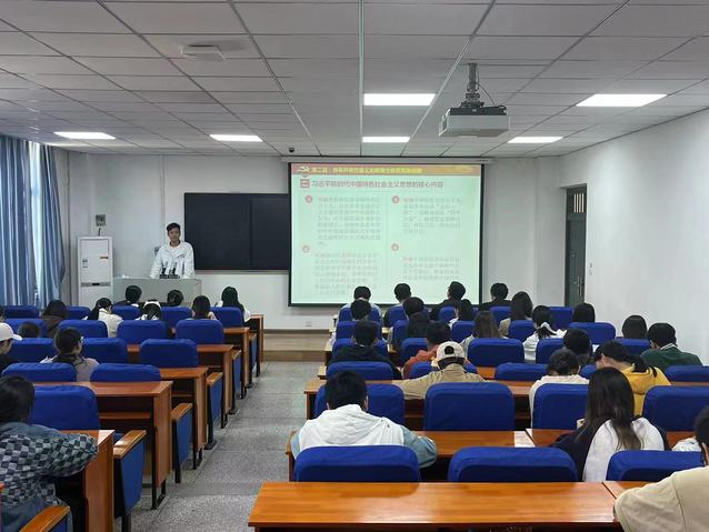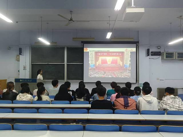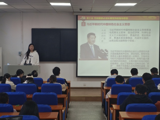 团日活动中,各班团支书通过PPT为同学们讲解了习近平新时代中国特色社会主义思想的理论内涵和重大意义,通过“十个明确”、“十四个坚持”、“十三个方面成就”引导大家深刻领悟习近平新时代中国特色社会主义思想的主要内容。各团支部委员领学了《开辟马克思主义中国化时代化新境界》、《扎实推动教育强国建设》、《努力成长为对党和人民忠诚可靠、堪当时代重任的栋梁之才》等习近平总书记的重要论述,并带领大家共同观看了党的二十大的相关视频内容,最后落脚到新时代的青年大学生该如何坚定信念,担当使命。同学们纷纷表示要深入学习贯彻习近平新时代中国特色社会主义思想,牢记习近平总书记对青年的殷殷嘱托,在新时代担当新使命、成就新梦想,为实现中华民族伟大复兴的中国梦而努力奋斗。