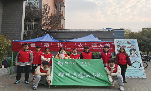 增强同学们资源回收利用意识,发扬志愿服务精神,1111日,材料与化学工程学院在科学校区开展“绿色传,往无前旧衣纸箱回收志愿服务活动。