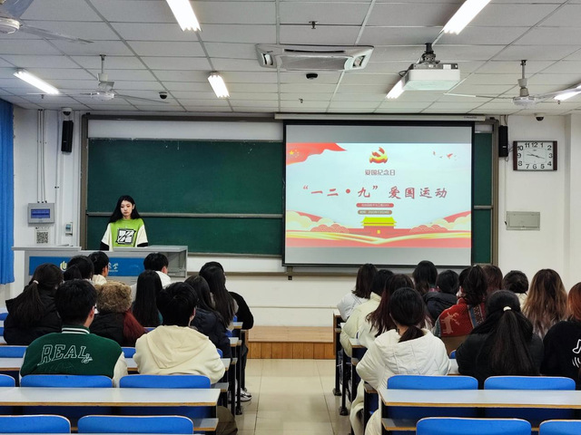 活动中,团支书带领同学们通过视频、图片等史实材料重温了那段不容忘却的历史,引领同学们深入感悟“一二·九”精神,不忘先辈奋斗历史。随后,团支部开展经典诗歌朗诵活动,同学们在诵读红色经典中追忆青年革命军力挽狂澜、救亡图存的昂扬姿态,感悟革命先烈不怕牺牲、英勇斗争的伟大精神。团支书呼吁同学们厚植爱国情怀,听党话、跟党走,鼓励同学们积极响应习近平总书记的对青年号召,不负时代寄予青年人的厚望。活动最后,同学们纷纷发表感言,表示自己将继承和发展以“一二·九”精神为代表的爱国主义精神,承担时代赋予青年的责任,为社会发展和国家富强接续贡献自己的力量。