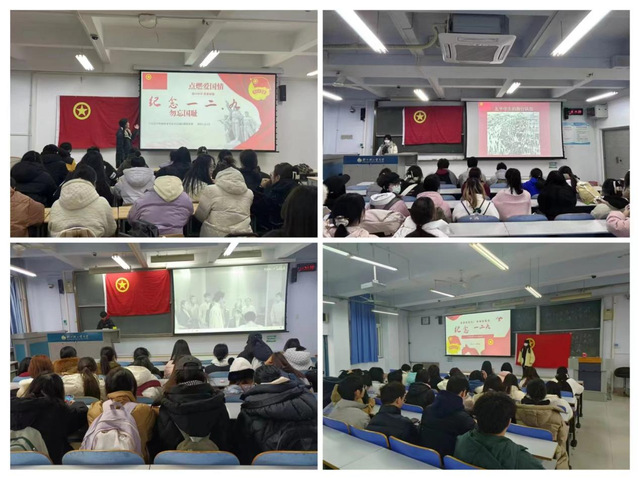 各团支部通过展示“一二•九”运动时期图片、重温入团誓词等形式带领同学们学习历史、接受革命传统教育、弘扬革命精神;通过小组讨论、红歌传唱等形式激发同学们的爱国热情,让大家认识到新时代团员青年要牢记历史、不忘初心,坚定理想信念;通过观看“一二·九”运动相关纪录片,启发团员们对爱国主义和民族精神的深刻思考,让同学们更加清晰地认识到自己作为新时代青年所肩负的历史使命和责任。