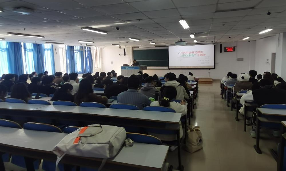 闫茂伟老师以自己生活中的案例向同学们阐述了“义”“利”“害”的形成与关系,引导大家正确对待和处理“义”与“利”的关系,重视道义与责任。为加深大家对“正确义利观”理念中的“义利相兼、以义为先”思想的深刻理解,闫老师强调正确义利观不承认丛林法则、霸权主义,反对以大欺小、以强凌弱、以众暴寡、以富压贫,而是要相互尊重、合作共赢、共同发展。通过与同学们共同探讨“正确义利观”的内涵以及其对国家和人民产生的影响,强调了“正确义利观”对个人、对社会、对国家、对世界的重要意义,并号召广大青年在看待国与国的问题上要坚持相互尊重、坚持平等。