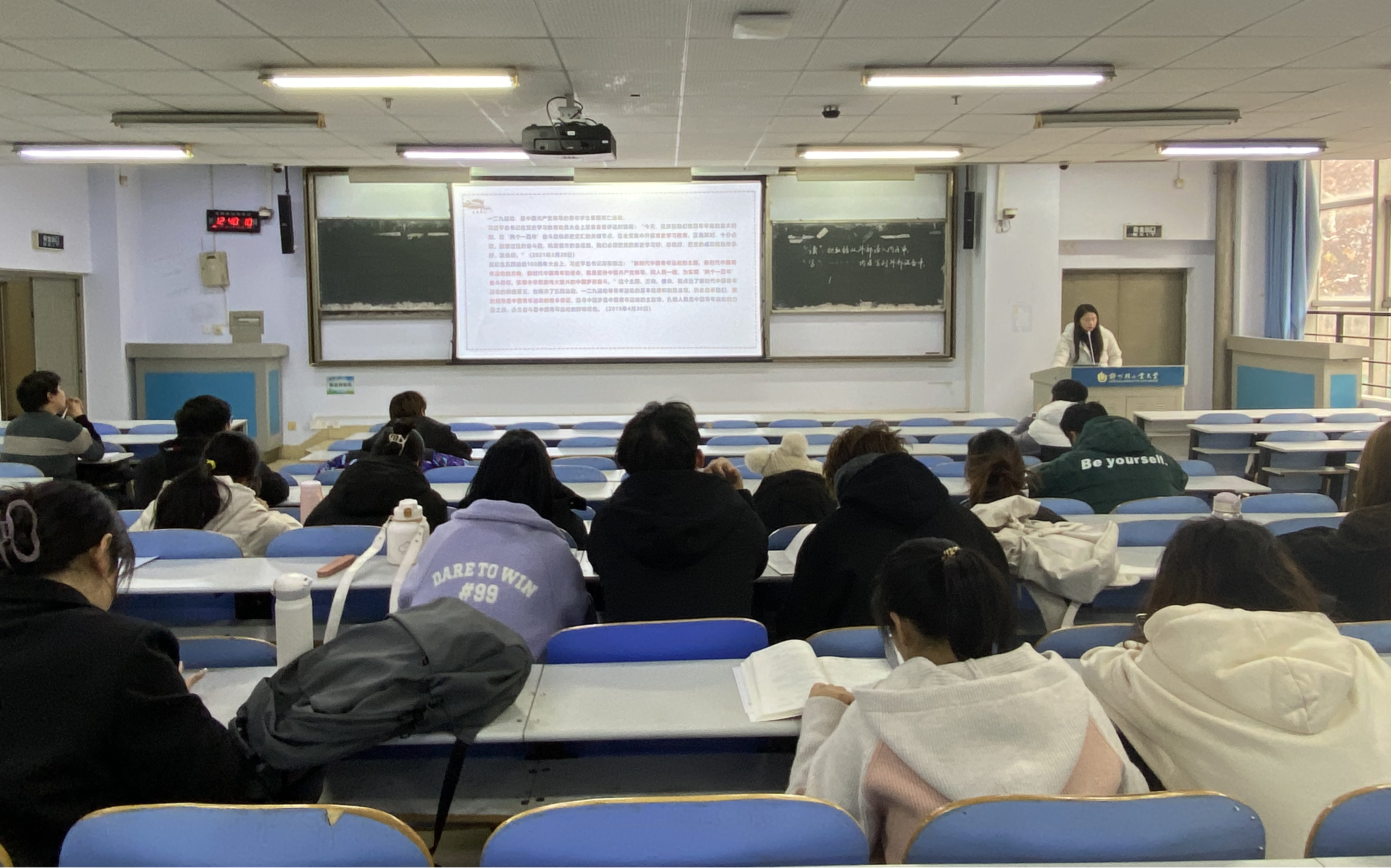 课上,翟一晓老师首先为同学们讲解了“一二·九”抗日救亡运动的历史背景,通过视频、图片、文字等形式,对“一二·九”运动的经过和意义进行了全面、系统、客观、生动的回顾。翟老师强调,88年前的“一二·九”运动是中国共产党领导的青年学生抗日爱国运动,公开揭露了日本帝国主义侵略中国东北的现实和继续吞并华北的野心与阴谋,打击了国民党政府的妥协投降政策,有效地配合了红军北上抗日,有力地弘扬了抗日救国的爱国主义精神,促进了整个中华民族的大觉醒大团结大联合,标志着中国人民抗日民主运动新高潮的到来。青年学生在这场运动中发挥出不可替代的重要作用,用激荡青春和澎湃热血唤起了全国各界人民群众,推动了中华民族独立和解放的历史车轮坚定前行。最后,翟老师带领大家重温了习近平总书记对广大青年的寄语,激励大家要继承和发扬“一二·九”运动中青年学生不畏险阻的爱国精神,厚植家国情怀、涵养进取品格,以奋斗姿态激扬青春,不负时代,不负年华。