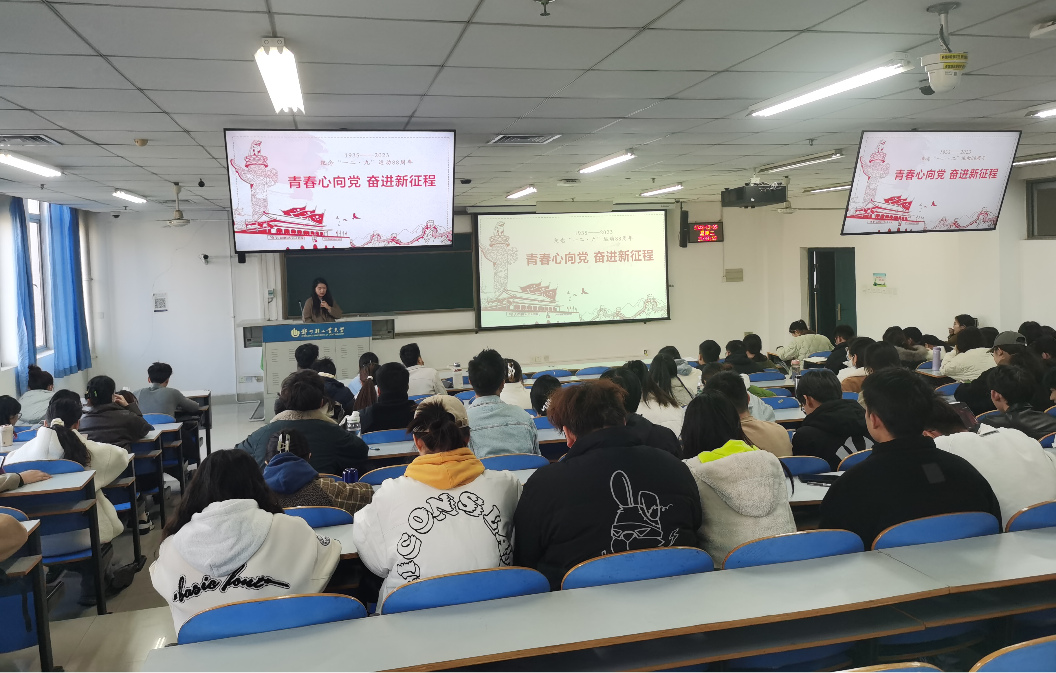 12月5日和12月12日,我校第二十七期青马班、第四届青马学会分别在科学校区三教楼204教室和东风校区教三楼105教室进行了理论课学习。本次课程由校团委翟一晓老师讲授,主题为《青春心向党奋进新征程》。