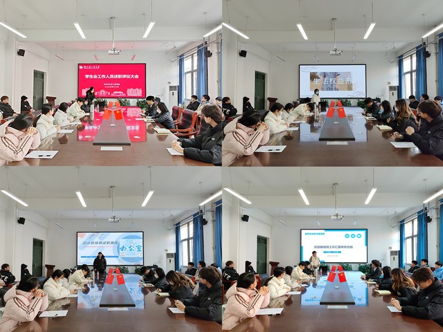 为加强学生会成员间的团队合作,提高学生会管理与服务水平,深入总结年度工作情况,12月21日下午,材料与化学工程学院于化工楼222室召开2023-2024学年第一学期学生会组织工作人员述职评议大会。本次大会由学院团委书记赵梦婕主持,校学生会评议人员、学院学生会全体成员参加本次会议。