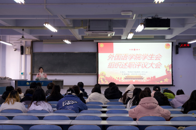 为增强学生干部的责任意识、服务意识和大局意识,落实好全心全意为广大学生服务的宗旨,12月20日中午,外国语学院在教三楼604召开2023-2024年度第一学期学生会工作人员述职评议大会。学院团委书记张文卿、校学生会评议人员、院学生会全体成员参加了本次会议。