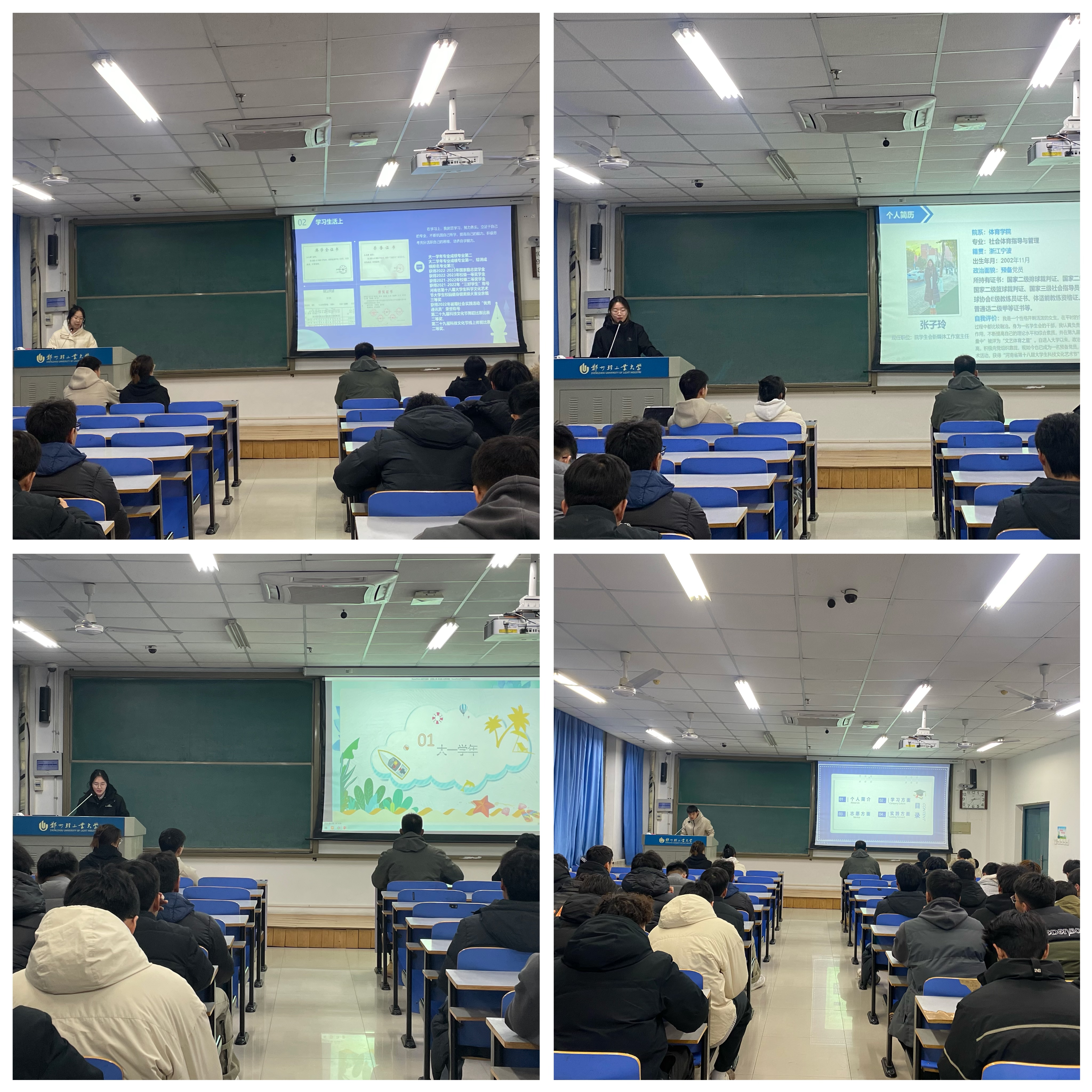 活动开始,宣讲人依次上台通过PPT演讲,分别围绕个人简介、学习成绩、社会实践、科研成果、文艺体育、职业规划等方面进行汇报。各位宣讲人通过生动、简练的语言,用自身的优秀事迹和人格魅力向观众们讲解自己的成长经历,展现出了体育学院学子昂扬向上、青春亮丽的精神风貌。宣讲现场气氛热烈,掌声不断。王静作总结。她对各位宣讲人的精彩表现表示了充分的肯定。,并勉励低年级同学要树立大学奋斗目标,努力淬炼学习本领,立足全面发展,不断提升“德”的修养、“智”的本领、“美”的情操、“劳”的能力,向优秀学长学姐看齐。
