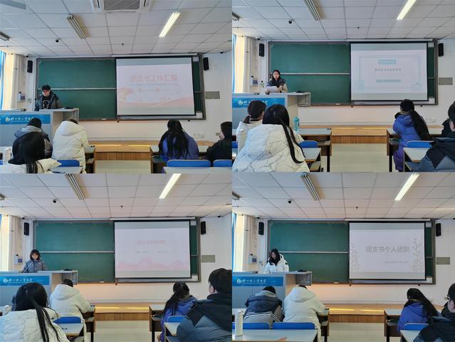 会上,各团支部书记以PPT展示的形式,围绕团支部基本情况、思想引领、组织建设、学风建设、团支部品牌特色等方面进行了深入总结,详细汇报了本学年工作落实情况和工作成果,并就支部现存的问题对下一步工作提出改进措施和详细的规划,明确了团支部未来建设的发展方向。最后,赵老师对各团支部书记出色的表现和辛苦付出给予了高度肯定,并对未来的工作提出了建议,希望各团支部书记能继续保持优良的团工作做法,详细规划好下一步工作和发展重点,进一步加强和完善团组织的团队建设。