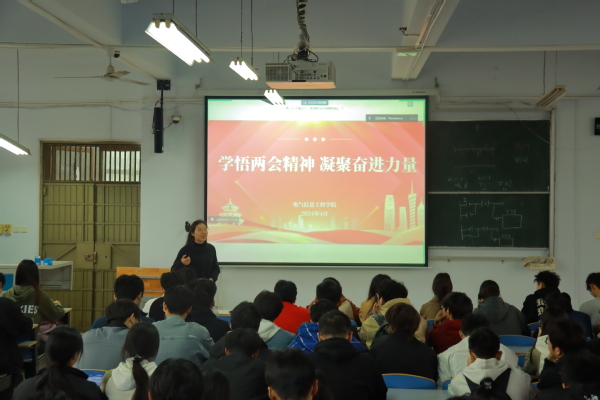 为深入学习领会两会精神,增强当代青年的责任感和使命感,提高青年政治素养,4月3日,电气信息工程学院在西五楼514开展“学悟两会精神 凝聚奋进力量”主题宣讲。本次宣讲由校青年讲师团成员廉琼老师主讲,学院青马班成员、团学骨干参加。
