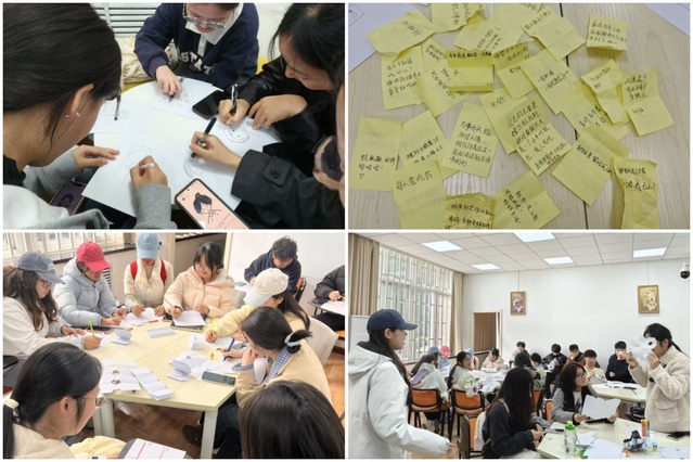 活动以“自画像绘制”拉开序幕,同学们在白纸上自由创作,在创作中完成与自我的深度对话。“一分钟减压挑战”将氛围推向高潮,同学们依次参与“深呼吸挑战”“正念冥想引导”等体验,在一分钟的专注练习中学习简易减压技巧。最后,同学们将匿名书写的“压力小纸条”投入“漂流瓶”,随后随机抽取并在便利贴上写下鼓励话语,这些便签组成了“解忧墙”,让同学们在释放心理负担的同时,也感受到来自集体的理解与支持,有效增强了班级凝聚力。