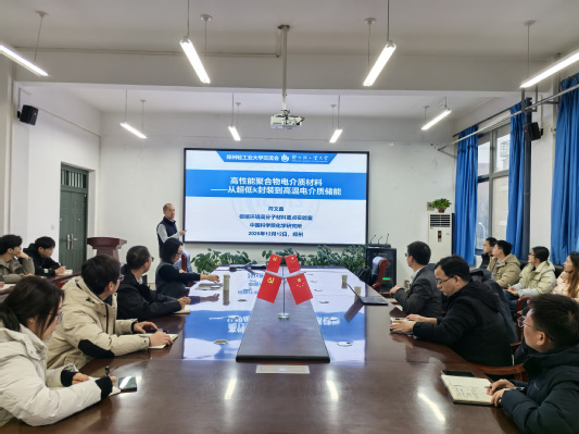 2025年12月12日上午,应材料与化学工程学院邀请,中国科学院化学研究所符文鑫研究员、南京大学张秋红教授莅临我校,在化工楼222会议室分别作题为“高性能聚合物电介质材料”和“分子滑轮弹性材料”的学术报告,学院院长张晓静、相关专业教师和研究生参加了报告,会议由张晓静院长主持。