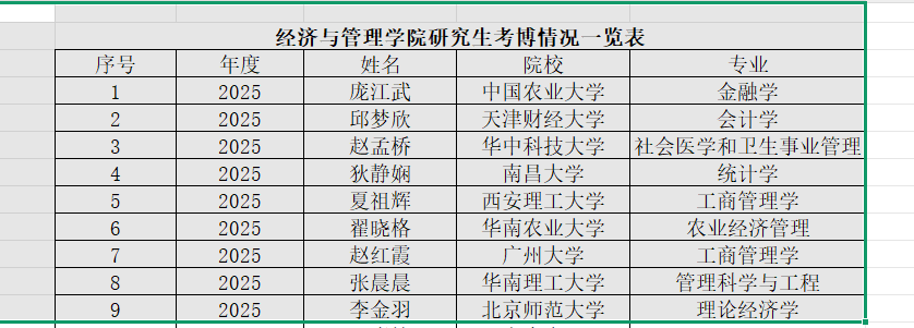 经济与管理学院9名硕士毕业生成功考取博士研究生
