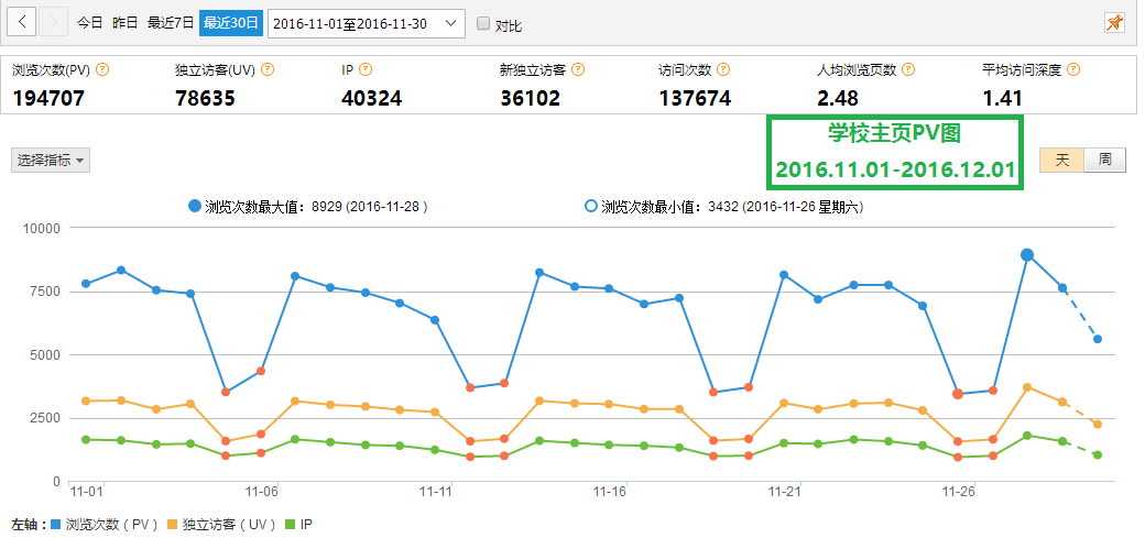 以下为各网站的基础数据截图,具体分析说明参考《学校各网站访问概况统计报告》文档