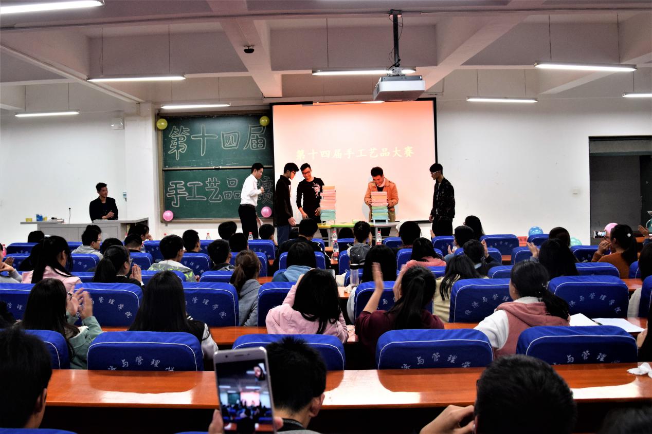 为了贯彻“十九大思想”,坚定不移推进生态文明建设,提高当代大学生的动手能力,增强大学生的环境保护意识,营造良好的科学技术与文化氛围。2017年12月1日晚7点,经济与管理学院于经管楼211,举办了第十四届“留下一缕清香,放飞指尖梦想”手工艺品大赛。