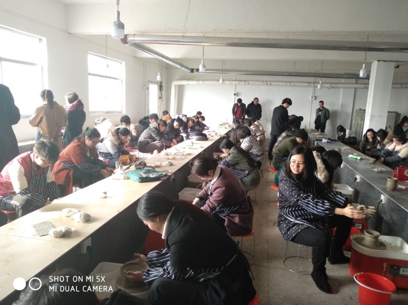 12月27日,由王初建老师、李程宇老师和刘丽丽老师带队到禹州市神垕镇进行钧瓷制作和市场调研。在钧瓷制作车间,同学们首先认真观看了专业师傅们的拉坯示范,接下来每人操作一台机器进行拉坯体验,随后同学们又在成型的胚体上的进行了彩釉绘制。之后同学们又对神垕镇的钧瓷市场进行了参观和调研,目睹了一件件令人惊叹的钧瓷艺术作品,感受了钧瓷悠久的历史文化,学生在此次考察活动中,通过亲身体体验钧瓷的拉坯成型和上釉活动,感受了钧瓷深邃的文化底蕴和艺术价值。