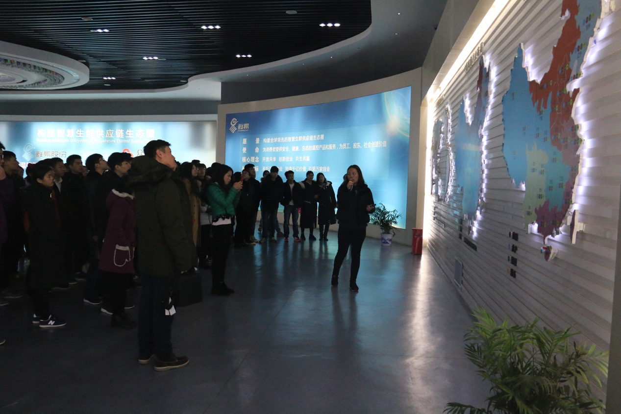 12月22日,在于博主任,鞠红老师,李国政老师带领信1401班,物流1401班,物流zsb1601班全体同学来到河南众品集团进行学习、交流。该公司人力资源部主管李经理讲解了鲜易供应链的运营理念、管理模式以及发展方向,让同学们了解公司发展历史、社会责任和自主创新等。紧接着同学们又深入熟食加工车间参观,从中了解到了熟食加工的设备、设施以及关键流程,最后同学们走进了屠宰车间,工作人员讲解了分割、包装和物流运输过程,讲解十分形象,通俗易懂,气氛活跃,同学们收获颇丰。