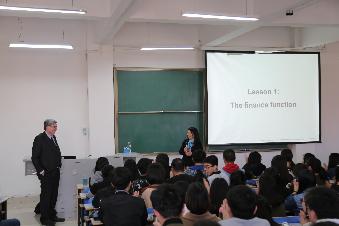 同时,Gerard Long教授按计划开展了多场丰富多彩的讲学活动。会计学专业和财务管理专业2015级近200名学生到场聆听。在会计系老师安慧、王桢、毛艳芬、杨雪萍、王光霁等老师的积极配合下,Gerard教授用丰富生动的案例向学生们呈现了《Corporate Finance》中的The finance function、Capital structure、Market efficiency等精彩内容。Gerard教授严谨的态度、渊博的学识及幽默的风格赢得了同学们的阵阵掌声。