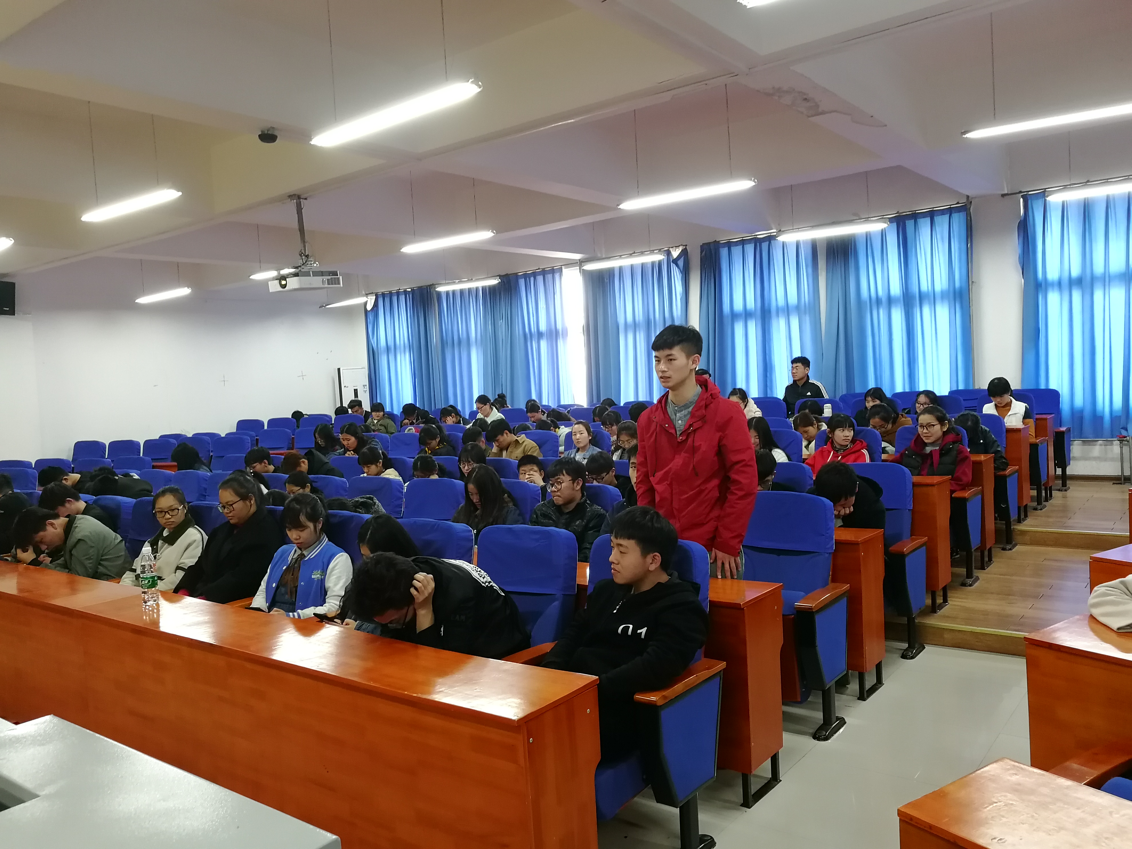 为深入学习贯彻两会精神与内容,培养同学们的责任意识和爱国情怀,增强大学生的思想政治理论素养。经济与管理学院于2018年3月17日中午12点30分在经管楼211举办了以"认真学习两会精神,以奋斗的姿态展现新作为"为主题的研讨会。2017级各班班级代表共150余人参加此次活动。
