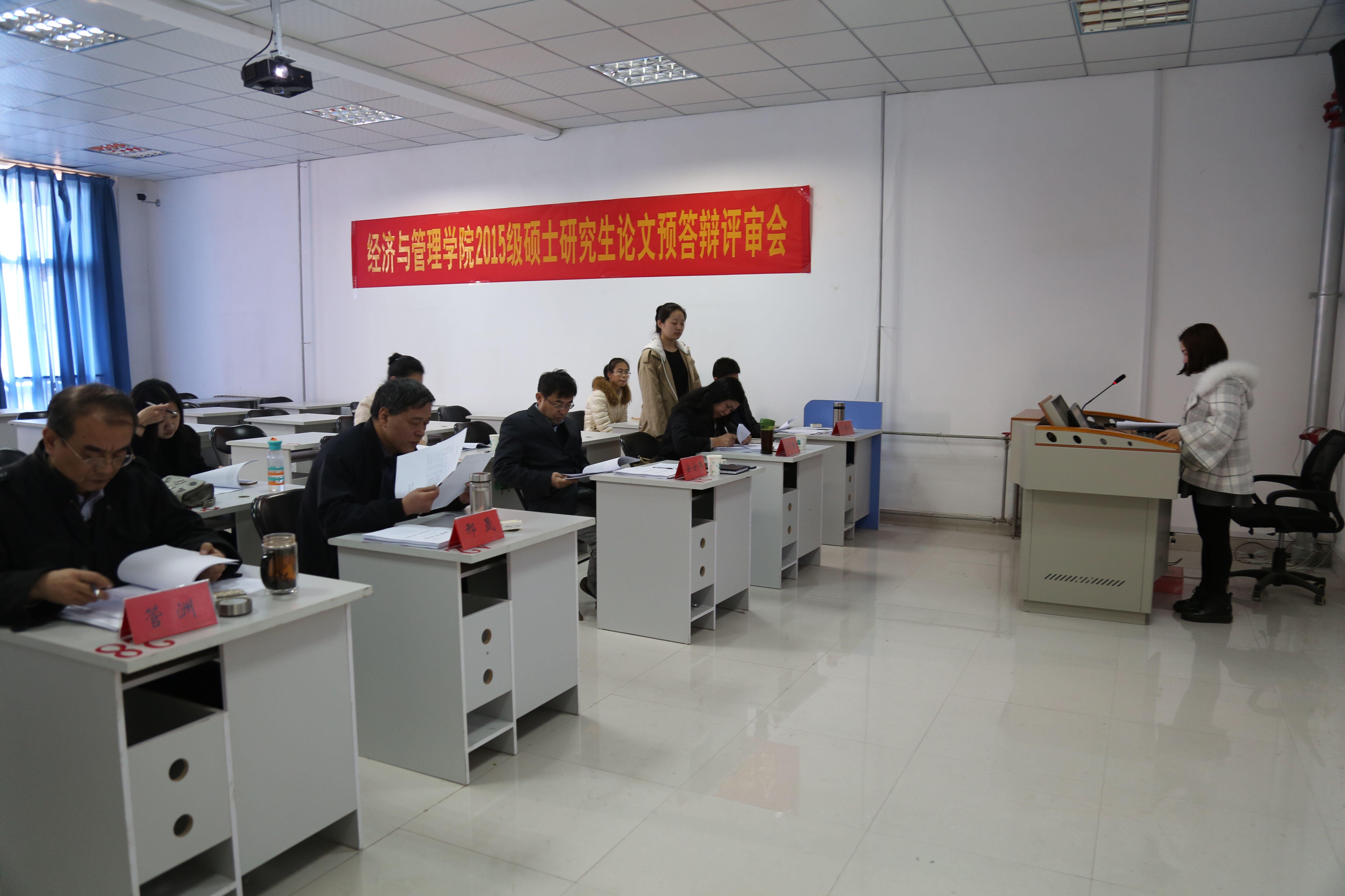 2018年3月22日上午,为了更好地完成研究生毕业论文答辩工作,确保毕业答辩的顺利完成,经济与管理学院2015级研究生毕业论文预答辩会在经管楼410教室举行,全体硕士指导老师与2015级11位研究生参加了此次答辩会,2016级部分研究生进行旁听。