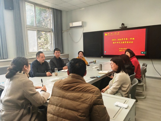 11月20日下午,外国语学院在东二楼225召开2025-2026学年第一学期期中研究生教学座谈会。会议由MTI中心主任赵祥云主持,外国语学院副院长边铀铀、研究生导师及任课教师代表、24级研究生代表和25级全体研究生参加会议。