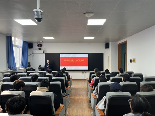 为深入学习贯彻党的二十届四中全会精神,切实把全院教职工的思想和行动统一到党中央决策部署上来,11月20日下午,校党委讲师团成员宋瑞娟博士受邀在东二楼209教室作党的二十届四中全会精神专题宣讲报告,外国语学院全体教职工及学生代表参加会议。
