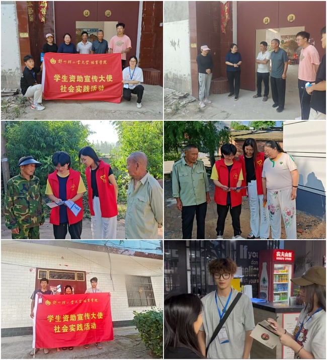 7月5日,实践团队前往郑州中学等学校进行资助走访宣传,与学生及家长面对面交流,讲解国家资助政策和介绍高校贷款以及相关法律知识,鼓励更多学子勇敢追梦。7月6日至10日,队员们前往商丘市虞城县的资助中心了解当地乡村振兴的基本情况和脱贫状况,并进行助学政策宣传。同时,队员们还分别前往河南省许昌市禹州市无梁镇郭庄村、江苏省盐城市盐都区凤凰小区等社区进行走访宣传,用通俗语言讲解助学贷款、助学金等内容,并发放政策宣传手册,把“不让一个学生因贫失学”的承诺传递到群众身边。