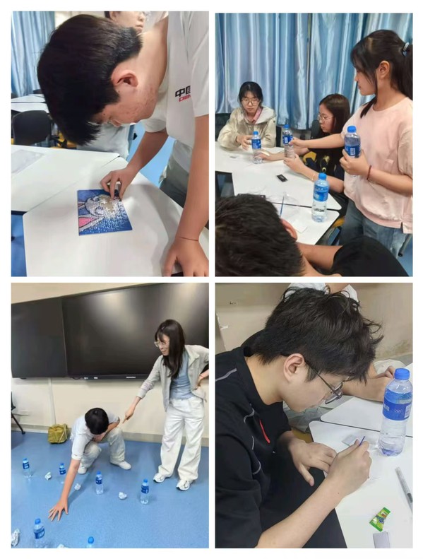 项目以微笑拼图作结,各组需通过微笑、手势等无声方式交换拼图碎片。在静默谈判中,学生们用真诚的笑容打破了社交壁垒,无声协作诠释了积极情绪的力量。不仅锻炼了非语言沟通技巧,更能让大家相互构建信任基础,强化团体凝聚力。