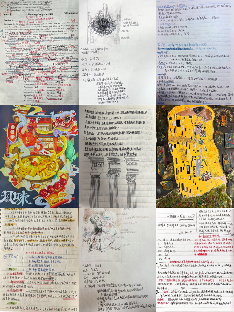 活动共征集到各类笔记作品100余份,内容丰富详实,涵盖了插本笔记、复习笔记、课堂笔记、课程作业以及设计类专业课业作品草稿等多个类别。这些作品充分展现了设计学子的专业特色与创新思维:有的图文并茂,将手绘草图与理论知识完美结合;有的逻辑严密,通过精美的思维导图梳理设计脉络。这些笔记不仅字迹工整、重点突出,更真实记录了同学们严谨治学、勤于思考的求知过程,体现了扎实的专业素养。