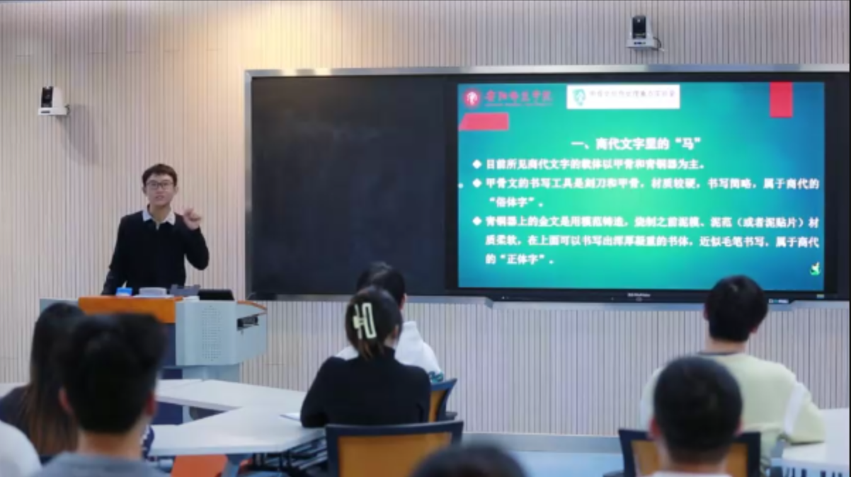 1月11日,马克思主义学院思政对话栏目“在马言马”第十期在科学校区三教楼智慧教室520成功举办。本次活动聚焦殷墟甲骨文与中原优秀传统文化“两创”,以“甲骨藏‘马’韵文脉贯古今——河南文化大家谈”为主题,邀请安阳师范学院甲骨文信息处理教育部重点实验室副教授韩胜伟担任主讲嘉宾,马克思主义学院教师桑慧荣和20余名本科生参加,学院教师章冠博主持。