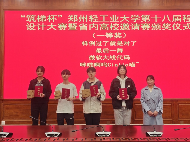 上午十时,比赛正式拉开帷幕。随着一道道题目被成功解答,赛场上陆续升起彩色气球,现场气氛紧张而热烈。经过五个小时的激烈角逐,由来自郑州市桐柏一中等学校的信息学竞赛生组成的两支队伍夺得冠亚军,我校获得季军,另外郑州大学、河南工业大学、华北水利水电大学、中原工学院均有队伍跻身前十。本次大赛面向校内队伍设置了特等奖1项、一等奖4项、二等奖8项、三等奖12项及最佳新人奖1项,同时为外校队伍设立了10项外校特别奖。由我校嵌入式专业2024级学生任展麟、董孟欣、胡胜杰组成的“石中剑”队荣获特等奖。