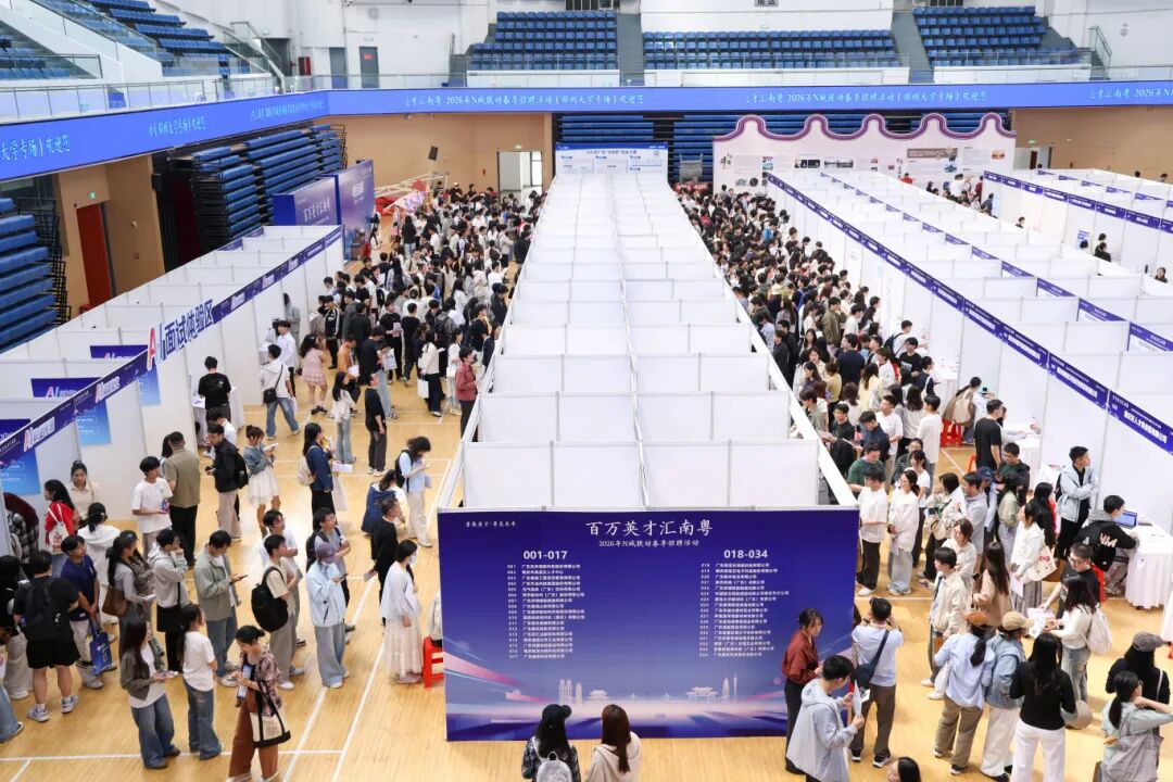 4月18日,“百万英才汇南粤”2026年N城联动春季招聘活动(河南专场)在郑州大学中心体育馆圆满落幕。我校组织200余名毕业生到场参会,与用人单位面对面洽谈交流,精准对接就业需求。