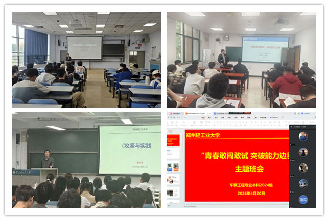 近期,机电工程学院组织开展“青春敢闯敢试,突破能力边界”主题班会。本次班会是“匠心青铸”班主任铸魂育人工程第三期活动,由2024级班主任主持,全体2024级学生参与。