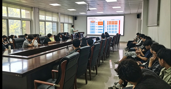座谈中,夏成恩总经理详细介绍了郑州森鹏物联网有限公司的发展概况、核心业务、技术研发方向及未来战略布局。重点分享了企业在物联网、人工智能产业落地、智能化项目研发等领域的技术成果与应用案例,结合行业发展现状说明了企业的人才需求标准,让学院参会教师和同学清晰掌握了行业前沿动态与岗位能力要求。