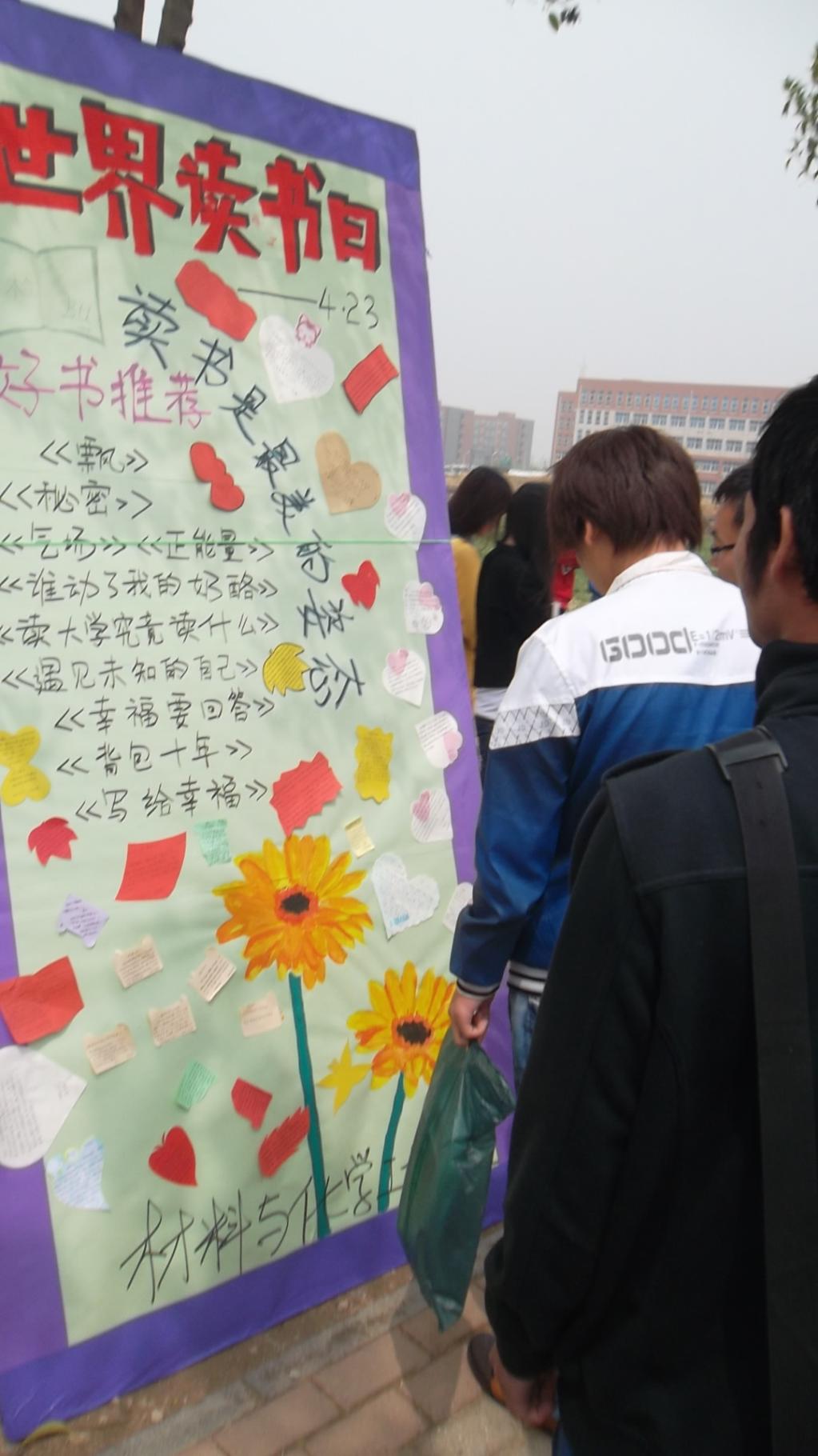 2013年4月23日是第18个世界读书日,为了使学生认识到读书的重要性,鼓励学生多读好书,喜欢读书,品味读书的乐趣,材料与化学工程学院以“世界读书日”为契机,开展主题活动。
