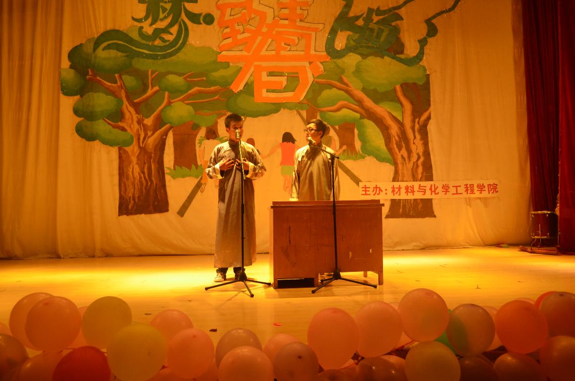 2013年5月25日晚上7点,材料与化学工程学院在科学校区电教楼208举办“致青春·梦飞扬”欢送2013届毕业生晚会。学院领导、辅导员、部分专业老师以及2013届毕业生等500余名同学观看了演出。