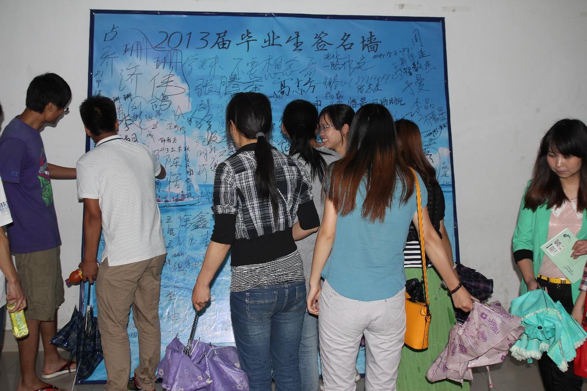 岁月的流逝挥不去执着的梦,时光的飞驰带不走永恒的心,正如毕业生在晚会现场“2013届毕业生签名墙”和“心愿树”留下的那些真挚话语“轻院,加油!”“祝学弟学妹明天更美好”……。晚会为毕业生们送上一场临行前的视觉盛宴,不仅表达了学院老师以及学弟学妹对2013届毕业生的深深祝福,同时毕业生也借此将自己的对母校及老师的依依惜别之情得以表达,他们将带着老师的殷切希望,踏上人生新的征程,为自己的青春梦想继续奋斗。